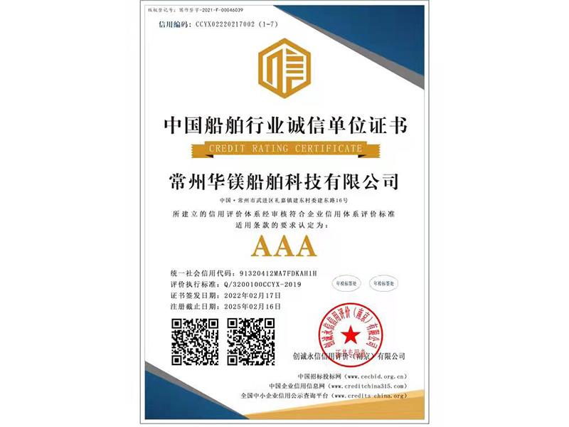 船舶行業(yè)誠信單位證書